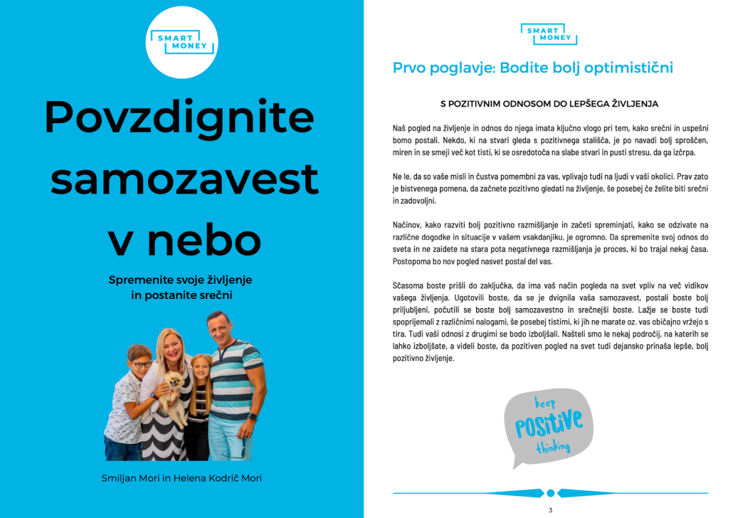 Samozavest in samopodoba sta ključna elementa za ustvarjanje uspešnega in srečnega življenja. Prenesite obsežno e-knjigo z vajami in tehnikami za sprejemanje sebe, sledenje lastni intuiciji in premagovanje strahov in dvomov. E-knjiga Povzdignite samozavest v nebo je napisana na podlagi 20-letnega raziskovanja nevroznanosti in pozitivne psihologije.
